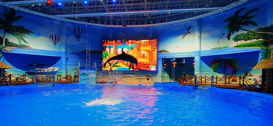該場館分為淡水生物展示區(qū)、海水生物展示區(qū)、水母展示區(qū)、科普互動展示區(qū)、萌寵動物展示區(qū)、白鯨行為演繹展示區(qū),海豚秀場等組成,館內(nèi)展示各種水生動物四百余種,三萬余尾(條),陸生動物一百余種,三百余只(頭),更有極具科普和觀賞價值的多種珍惜海洋動物。